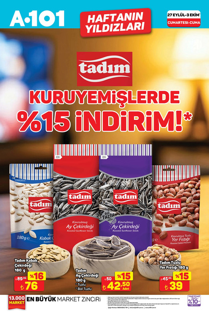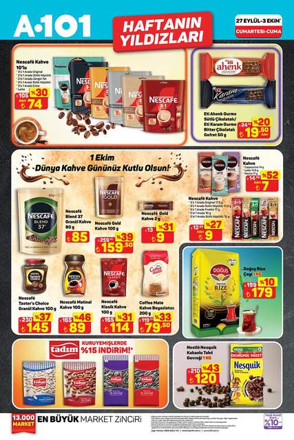 A101 27 Eylül- 3 Ekim kataloğu gündemdeki yerini aldı. Alışverişseverler buu hafta A101'de hangi ürünlerin yer aldığını merak ediyor. Peki, 27 Eylül- 3 Ekim A101 kataloğunda neler, hangi ürünler indirime girdi? İşte A101'de haftanın fırsatları...