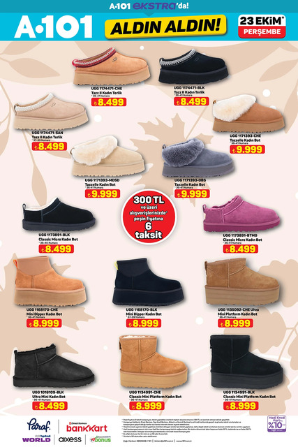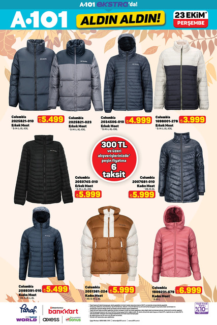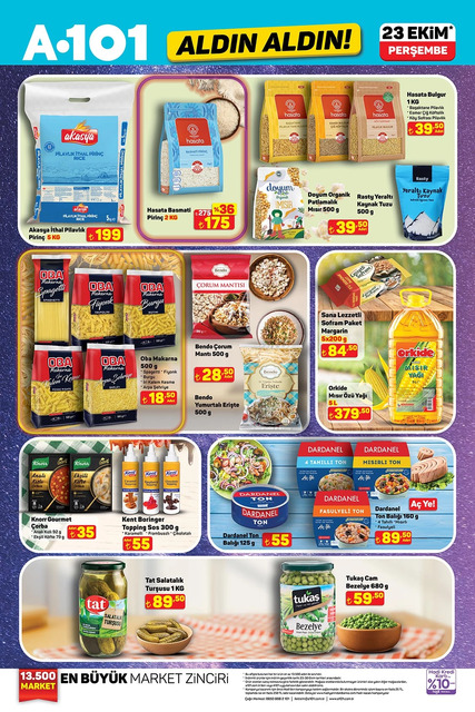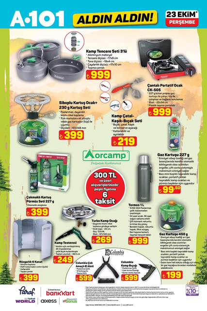23 Ekim A101 aktüel ürünler kataloğu indirimleri belli oldu. Aldın Aldın sloganıyla indirimlerini duyuran A101 indirimlerinde 65" UHD Android Tv 25.999 TL, çantalı portatif ocak 999 TL, 3'lü kamp tencere seti 999 TL, takım çantası 199 TL, emaye kızartma tenceresi 369 TL, çift kişilik çarşaf 349 TL’den satışa çıkıyor. İşte, a101 aktüel ürünlerin tamamı