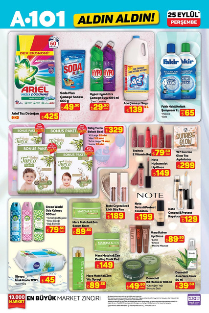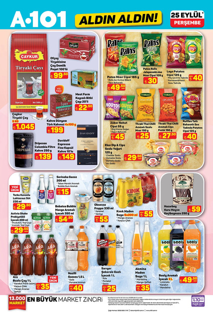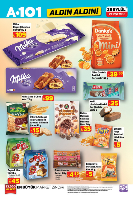 A101 aktüel ürünler kataloğu 25 Eylül tarihi için belli oldu. Çay, makarna, süt, yoğurt, küp şeker, tahin, pekmez indirimli ürünler arasında yer aldı. İhtiyaca yönelik alışveriş yapmak isteyenler A101 25 Eylül kataloğu indirim listesini merak ediyor. İşte, 25 Eylül 2025 A101 aktüel ürünler kataloğu indirimleri