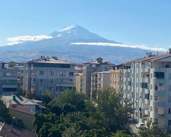 DHA'daki habere göre Avrupa'nın da en yüksek dağı olan, aynı zamanda sönmüş volkanik dağ olma özelliği taşıyan Ağrı Dağı'nın zirvesi, gece yağan karla beyaza büründü.