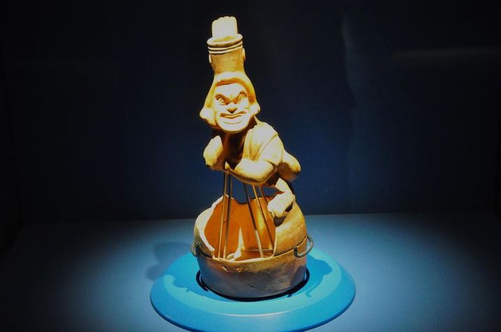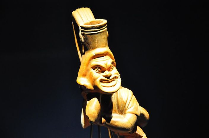 Vazonun üzerindeki figürün ilk bakışta korkutucu bir insan yüzü gibi göründüğünü belirten Prof. Dr. Sezgin, bunun aslında antik dönemde tiyatro oyuncularının taktığı maskeleri betimlediğini vurguladı.