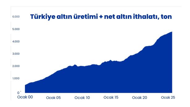 Yastık altı rakamına nasıl ulaşıldığını da yazalım. Türkiye’deki altın üretimi ile net altın ithalatı 1996 yılından itibaren birikimli olarak toplanıyor. Tüm borsa verileri alınıyor. Merkez Bankası ve Hazine'nin elindeki altın ile kıymetli maden depo hesapları bu hesaptan çıkarılıyor. Geri kalan tutar doğal olarak yastık altı olarak karşımıza çıkıyor.