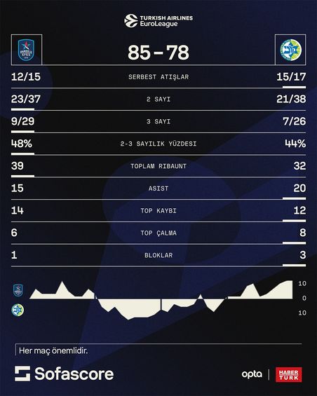 Anadolu Efes - Maccabi Tel Aviv: 85-78 (MAÇ SONUCU)