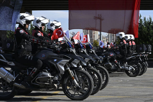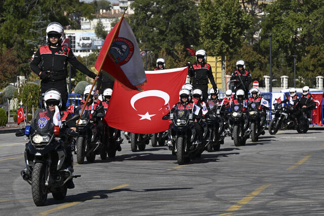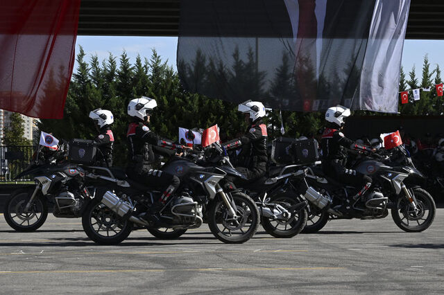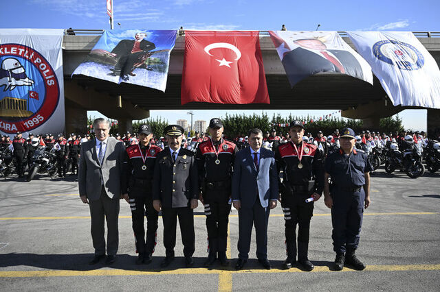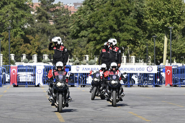 Ankara Emniyet Müdürlüğü Asayiş Şube Müdürlüğüne bağlı Motosikletli Polis Timler Amirliğinde temel eğitim kursu alan 7'si kadın 85 yunus polisi için mezuniyet töreni düzenlendi.