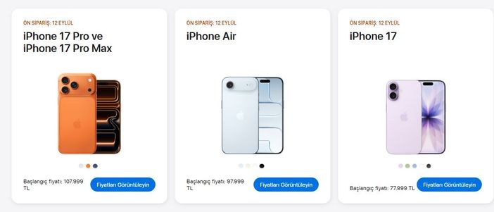 iPhone 17 Serisi Türkiye Fiyatları (KDV Dahil) Apple’ın resmi sitesinde açıklanan fiyatlar şu şekilde: