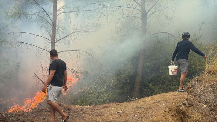 Bazı gönüllüler ile vatandaşlar da ekiplere destek verdi. Traktörle bölgeye gelen bir vatandaş, alevleri kendi çabasıyla söndürmeye çalıştı.