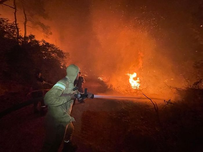 Ekipler, rüzgarın etkisiyle yayılan yangını kontrol altına almak için gece boyu çalışma yürüttü.