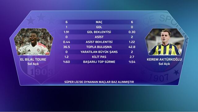 Trendyol Süper Lig'in 11. haftasındaki dev buluşmada Beşiktaş, sahasında ezeli rakibi Fenerbahçe'yi konuk edecek. İki takım da derbiden galip ayrılarak zirve yarışında iddiasını sürdürmek istiyor. Dev maç öncesi iki takımın öne çıkan futbolcularını karşılaştırdık. İşte kritik mücadelenin kilit isimleri ve dikkat çeken istatistikler...