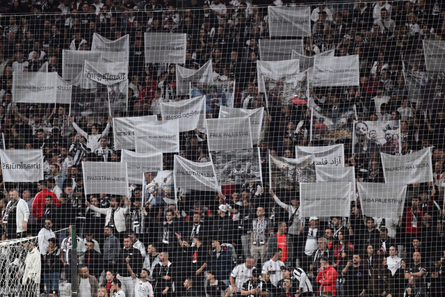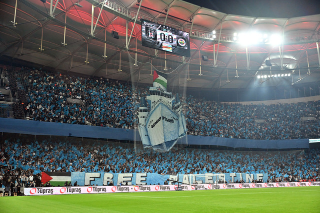 Trendyol SüpeR Lig'in 11. haftasında Beşiktaş, Fenerbahçe'yi konuk etti. Siyah-beyazlı tribünler, seremoni öncesi açtıkları pankart ve koreografiyle Filistin'e destek verdi