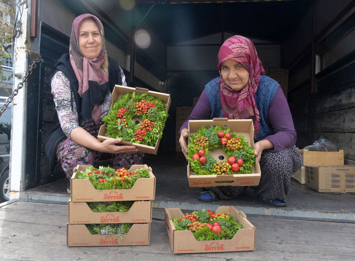 Bölgede çelenk üretimi ve ihracatı yapan bir firmanın sorumlusu Ulaş Aktürk, "Çelenk işini 2005 yılından beri yapıyoruz. Evlerin önüne sabah meyveler ve bitkiler dağıtılıyor. Akşamüzeri, öğleden sonra 14.00- 15.00 gibi yapılan çelenkler toplanıyor. Depoya getiriliyor. Depoda paketleniyor. Firma olarak bizim 100'e yakın ev var. Kadınlar bitki ve meyveleri sarıyor, öğleden sonra topluyoruz. Yaklaşık 2 günde bir TIR'la Hollanda ve Almanya'ya gönderiyoruz. Köydeki neredeyse hemen her evde 25 Ağustos'ta başlayıp aralık ayının ilk haftasının sonuna kadar kadınlar ve bazı erkekler bu işi yapıyor" dedi.