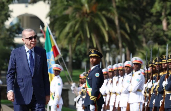 Cumhurbaşkanı Erdoğan, resmi ziyaret için geldiği Etiyopya'nın başkenti Addis Ababa'da Etiyopya Başbakanı Abiy Ahmed tarafından resmi törenle karşılandı. İki lider, görüşmenin ardından ortak basın toplantısında açıklamalarda bulundu. Cumhurbaşkanı Erdoğan konuşmasında, "Bölgenin yeterince çektiği acılara yenilerinin eklenmesini istemiyoruz. Afrika Boynuzu'nun yabancı güçlerin mücadele alanına çevrilmemesi gerektiğine inanıyoruz." ifadelerini kullandı.