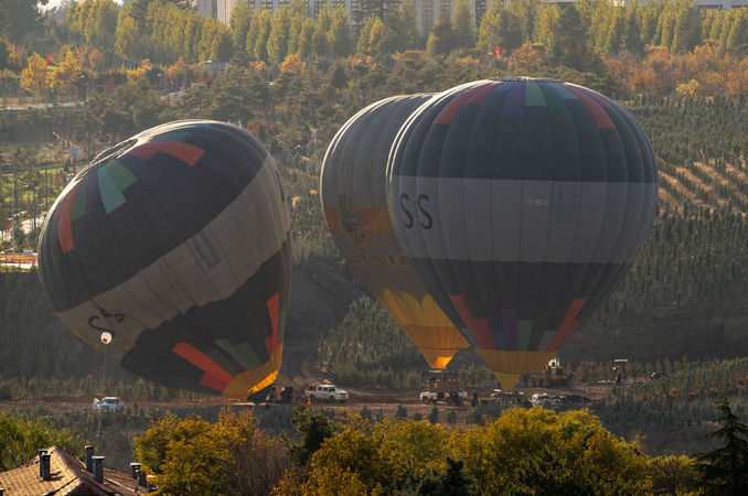 Kapadokya bölgesinden getirilen 16 balondan 8'i Cumhurbaşkanlığı Bulvarı'na, 8'i Millet Ormanı'na yerleştirildi.