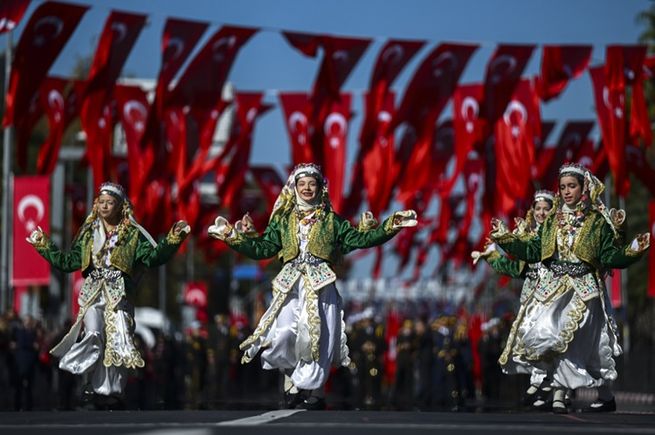 Şiirlerin okunduğu, halk oyunları ve dans gösterilerinin sunulduğu kutlamalar, geçit töreniyle sona erdi.
