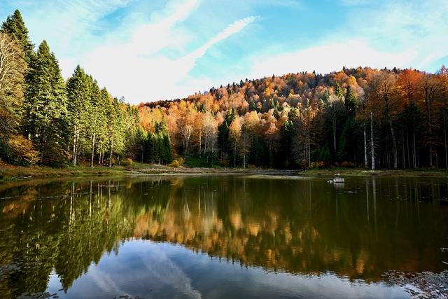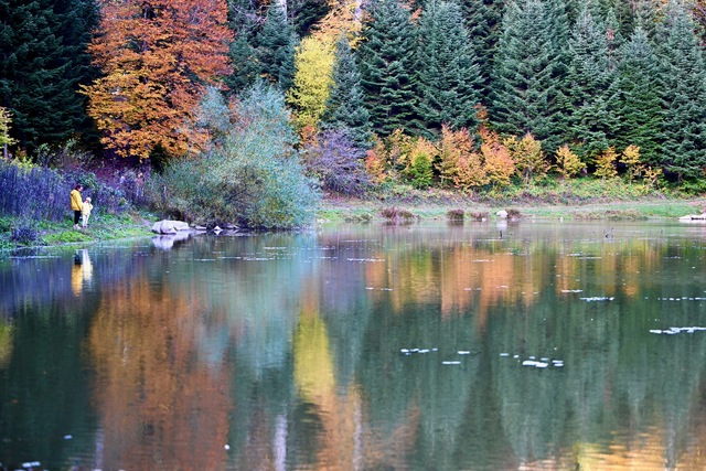 Düzce'deki Odayeri Yaylası ve Torkul Göleti, yeşil, sarı, kızıl ve kahverengi tonlara bürünen ağaçlarıyla misafirlerine sonbahar manzaraları sunuyor.