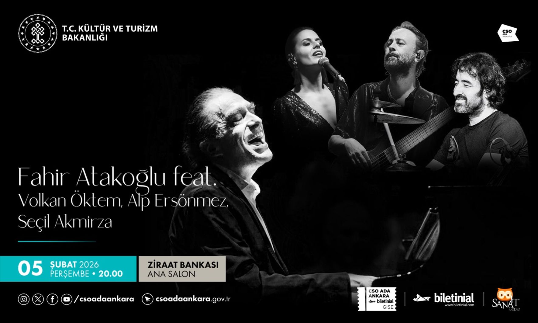 Dünyaca ünlü piyanist, müzisyen ve besteci Fahir Atakoğlu özel caz eserlerinden oluşan repertuvarıyla 5 Şubat 2026 Perşembe günü saat 20.00’de CSO Ada Ankara Ziraat Bankası Ana Salon’da müzikseverlerle buluşacak.