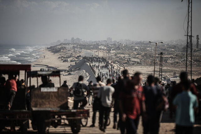 Filistinliler dönüş yolunda Gazze’nin orta ve güney bölgelerinden kuzeyine geçişi sağlayan Reşid Caddesi'ni kullanıyor.