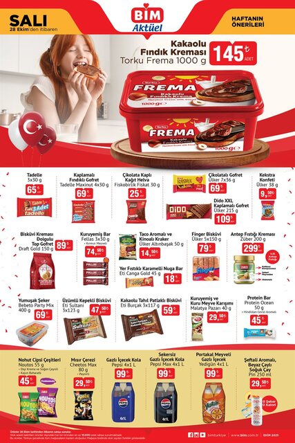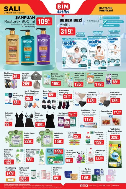 BİM 28 Ekim aktüel ürünler kataloğu yayımlandı. BİM'de bu hafta; temel gıda ve ihtiyaç ürünlerinden kozmetik malzemelere, giyim seçeneklerinden mutfak eşyalarına birçok kategoride ürün indirimli fiyatlarıyla alıcılarını bekliyor. İşte BİM aktüel 28 Ekim 2025 kataloğu ve fiyat listesi...