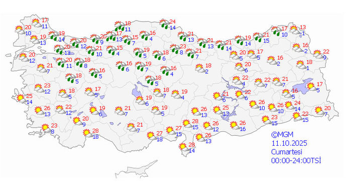 Macit, İzmir'de ise yağış beklenmediğini ve hava sıcaklığının da 23 ila 24 derece civarında olacağını kaydetti.