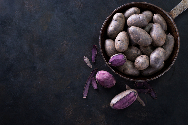 Görünümüyle diğer tüm patateslerden sıyrılan mor patatesler, antioksidan zenginlikleriyle sağlıklı bir alternatiftir. Mor kabukları ve bazen mor etleriyle sofraya görsel bir şölen katar.