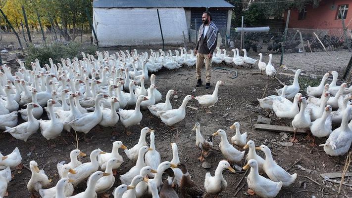 Ağrı'da kanatlı hayvan yetiştiriciliği yapan 35 yaşındaki Hüseyin Kösedağ, ıslık sesiyle çiftliğindeki yüzlerce hindi, kaz, ördek ve tavuğu etrafına topluyor. Kösedağ, "Kendi hayvanımızı üretiyoruz, dışarıdan almıyoruz. Kendi ürettiğimiz hayvanı müşteriye sunuyoruz. Bundan dolayı hayvan bize alışıyor, bizi bir anne gibi görüyor. Hayvanları sevdiğimiz için hayvanlar da bizi seviyor" dedi