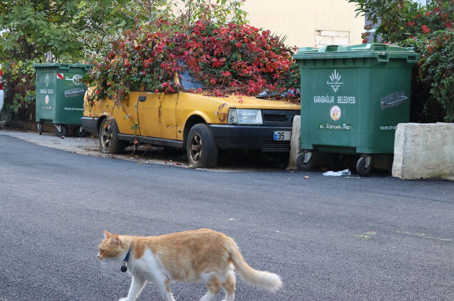 Üçkuyular Mahallesi'nde ikamet eden Mustafa Artun, AA muhabirine "Yaklaşık 3 yıldır burada yaşıyorum. Otomobilin üzerindeki sarmaşıklar daha kısaydı. Lastikleri de biraz şişikti ama son hali bu. Kaderini bekliyor" dedi.