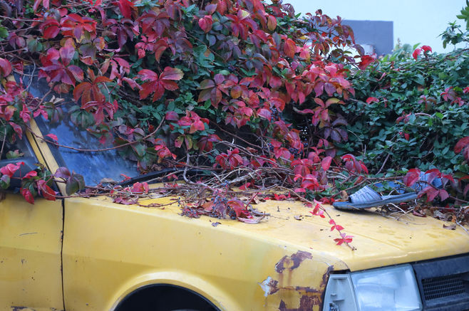 İzmir'in Karabağlar ilçesinde sahibi 8 yıl önce vefat eden park halindeki otomobil sarmaşıklarla kaplandı. 8 yıldır park halindeki otomobil, çekiciyle kaldırıldı