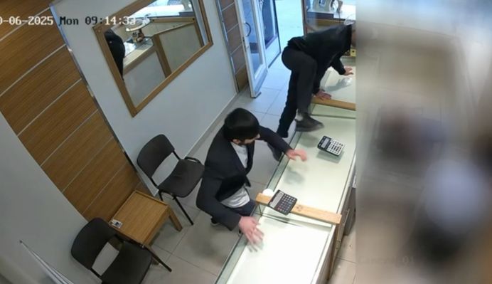 Dükkan sahibinin ifadesinin ardından iş yerinin güvenlik kamera kayıtları incelendi. İzlenen görüntüler aksiyon filmleri aratmadı. Görüntülerde iş yerine gelen 2 şüpheli, dükkan sahibinin kasayı açmasını bekliyor. Kasayı açtığını fark eden şüpheliler tezgah üzerinden atlayarak iş yeri sahibinin üzerine atlıyor.