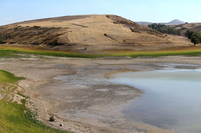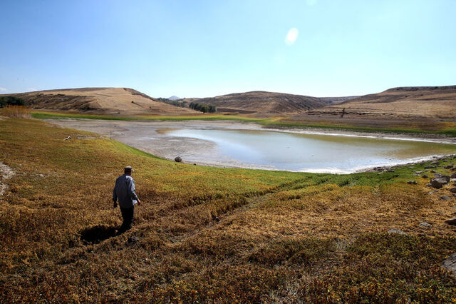 Kepiç Mahallesi Muhtarı Cemil Ertem, göletteki su seviyesinin ilk defa bu kadar çekildiğini söyledi.