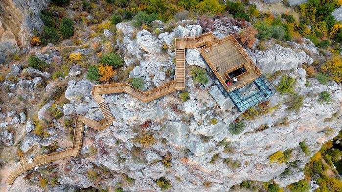 Çalışmalar kapsamında ilk etabında 1,5 kilometrelik yürüyüş rotasında yer alan ve tamamlanan 400 metresi kaya yüzeyinde kurulan platform ile ulaşılan seyir terası, ziyaretçilere güzel bir manzara izleme fırsatı sunuyor.
