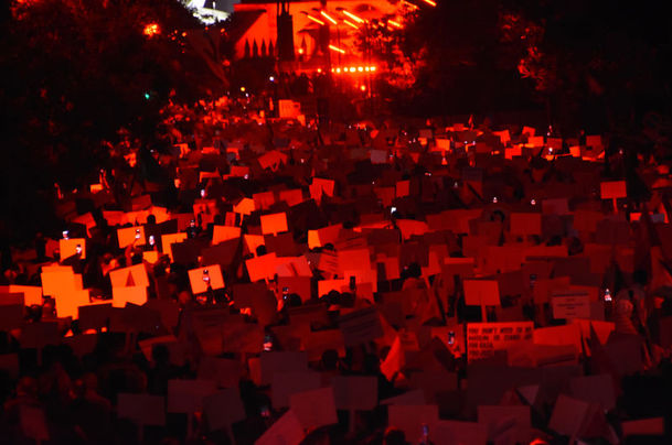 Yürüyüşe katılan on binler, üzerinde Gazze’de yaşamını yitirenlerin isimlerinin yazılı olduğu dövizleri taşıdı. Kentin ana caddeleri ve meydanları yürüyüşe özel kırmızı ışıklarla aydınlatıldı. Mevlana Meydanı’nda 7 dakikalık oturma eylemi yapıldıktan sonra etkinlik sona erdi.