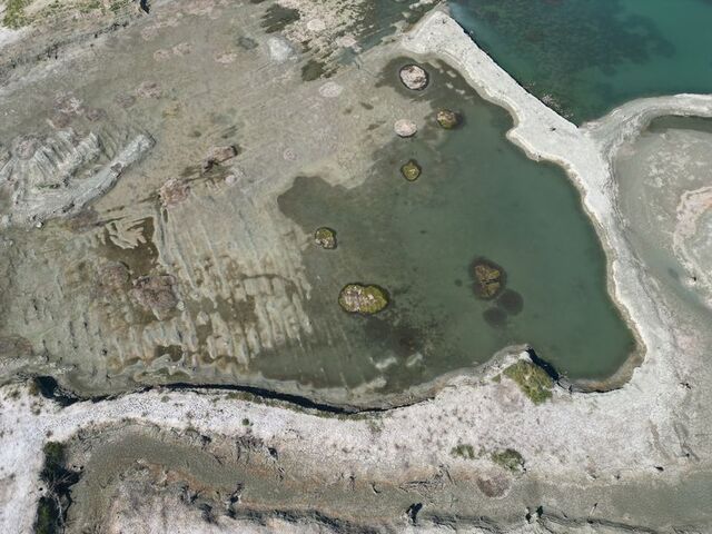 Atatürk Barajında kuraklık nedeniyle su seviyesinin düşmesi sonucu adacıklar gün yüzüne çıktı.