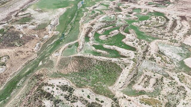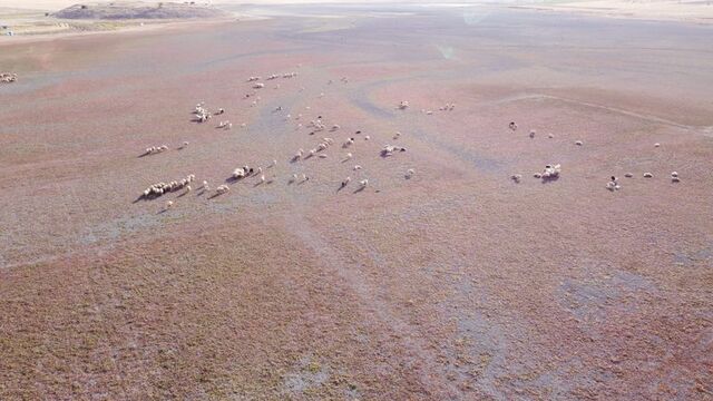 Yozgat’ın Esenli köyünde yer alan Gelingüllü Barajı’nda, bu yıl etkili olan aşırı sıcaklar ve kuraklık nedeniyle su seviyesi büyük ölçüde düştü. Kuruyan baraj havzası adeta çöle dönerken, yeşeren otlar ise çevre köylerden gelen küçükbaş hayvanların otlatılmasında kullanılmaya başlandı.