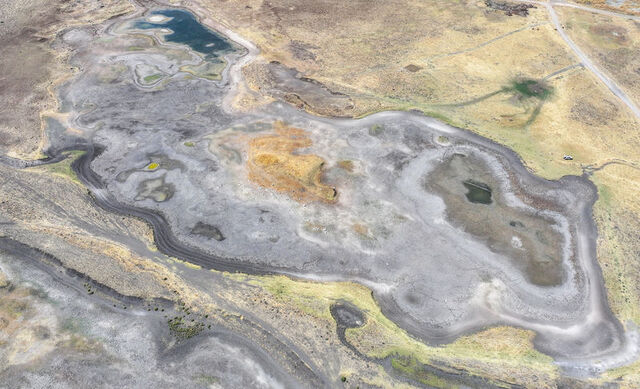Hatay'da Amik Ovası'nın su kaynaklarından olan Yarseli Barajı'nda son 65 yılın en kurak yılının yaşanmasından dolayı doluluk oranı yüzde 5'in altına düştü. Metrelerce çekilmenin yaşandığı barajı vuran kuraklık havadan görüntülendi