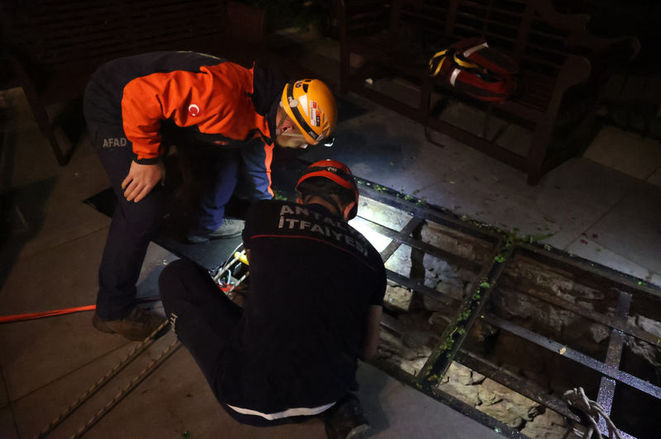 Ekipler, deniz yoluyla ulaşılamayacağını belirleyince Atatürk Parkı içindeki restoranın altından mağaraya inen tüneli kullanarak kurtarma çalışması başlattı. Halat sistemi kuran ekipler yaklaşık 30 metre aşağıda mahsur kalan 2 kişiye ulaştı.