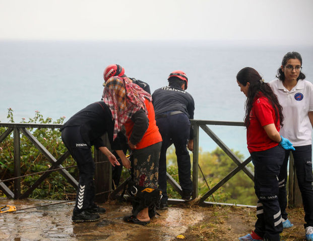 Öğle saatlerinde alt kısımdan falezlere doğru tırmanan Nubar B., bir süre sonra inmeye çalışsa da başarılı olamadı. Çevredekilere sesini duyurmaya çalışan kadını duyan bir kişi, durumu 112 Acil Çağrı Merkezi'ne bildirdi. İhbar üzerine olay yerine itfaiye ve sağlık ekipleri sevk edildi.