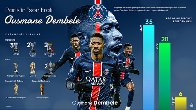 Ballon d'Or (Altın Top) ödülleri sahiplerini buldu. Paris'te Theatre du Chatelet'te gerçekleştirilen törende, Ousmane Dembele Ballon d'Or'un sahibi oldu. Gerçekleşen ödül törenin ardından, Dembele'nin hayatı ve futbol kariyeri gündemi meşgul eden konular arasında yer aldı. Gianluigi Donnarumma yılın kalecisi ödülünü alırken, yılın genç futbolcusu Lamine Yamal oldu. Peki, "Ousmane Dembele kimdir? Ballon d'Or kazanan Dembele kaç yaşında, hangi takımda oynuyor?" İşte detaylar...