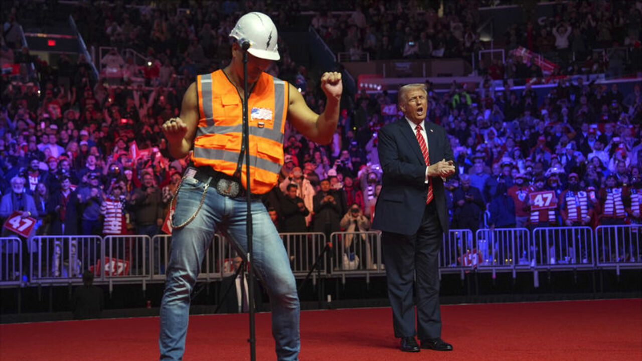 Trump orijinal üyelerinden sadece bir tanesinin hayatta kaldığı bu grubu Pazar geceki mitinginde sahneye çıkardı, onlarla dans etti. Böylece polis, Kızılderili, kovboy, bahriyeli gibi figürlerin arasına bir de Başkan eklenmiş oldu. Bir o eksikti.