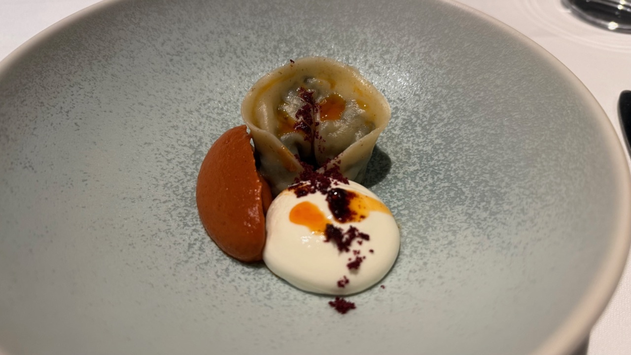 Meşhur mantı etli ve pazılı servis ediliyor, mutfak bazen karıştırıyor.Mantı artık tadım mönüsünde yok, ama ben özlediğim için fazladan istedim. Etli istememize, mutfağa masamıza bakan görevlinin etli demesine rağmen pazılı geldi. Doğrusu geldiğinde de yemeğin ritmi bozuldu, süresi uzadı.