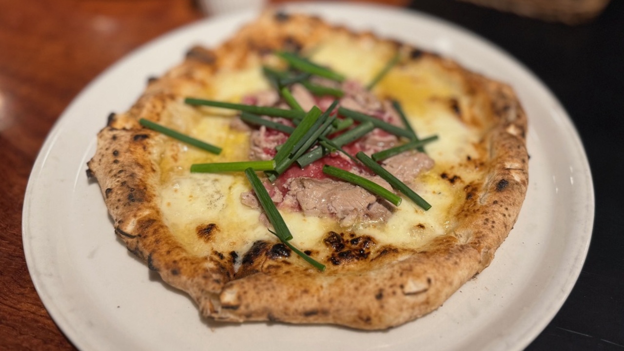Ton balıklı pizza mekanın en çarpıcı icadı.Savoy’un pizza’sının onunla benzerliği yok. Bambaşka bir lezzet. Reçete ilk açıldığı günden beri değişmemiş. Taze ton balıkları neredeyse bir temaki’ye konacak gibi ince ince doğranıyor ve hamurun tam ortasına yerleştiriliyor. Bütün iyi pizza’larda olduğu gibi hamurun çok yüksek ısıdaki fırına girip çıkması sadece birkaç dakika, o yüzden balık kurumuyor. Sadece tıpkı bazı sushi’lerde ateşle hafif üzeri kızartıldığı gibi çok ince bir kabuk kaplıyor. Bu arada peynir eriyor ve hamurun kenarları şişiyor. Üzerinde cömertçe taze soğanın yeşil kısımları serpiştiriliyor. Japonya’da ızgara et söylediğinizde bile masaya wasabi geliyor ve ton balığının üzerine süre süre yeniyor.