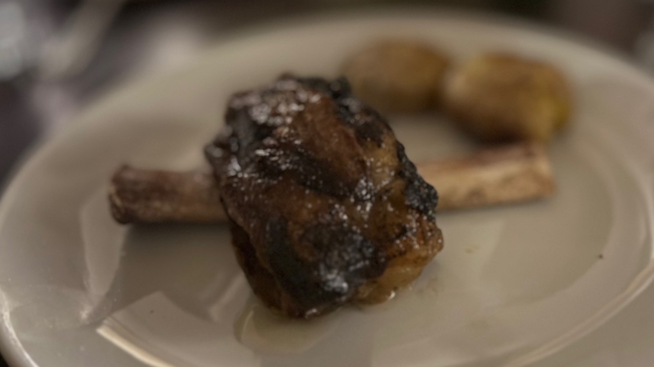 Dana dil söğüşü mutlaka tatmalıyım ama asıl yıldız o değil: Brisket, bir parça da dana yanak ilk aşamadaki et siparişlerimiz. Cömert porsiyonlar, her biri tam kıvamında pişmiş farklı etler. Siparişi abartıyoruz, yanında demi glace’ı andıran sosuyla tek bir kaburga da deniyoruz mekanın adına hürmeten.