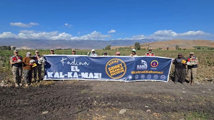 Bu kapsamda ekipler, pamuk tarlasında hasat yapan işçilere Kadın Destek Uygulaması (KADES) tanıtımı ve bilgilendirme faaliyeti gerçekleştirdi.
