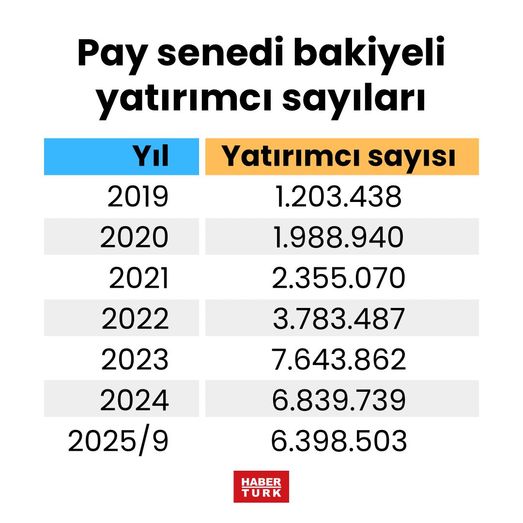 Karagöz, pandemi döneminin sermaye piyasaları açısından bir dönüm noktası olduğunu belirterek "Dijitalleşmenin hızlanması, düşük faiz ortamı, tasarruf eğilimindeki artış, getiri arayışıyla değişen yatırımcı tercihleri, üyelerimizin sunduğu kesintisiz, yenilikçi ve kaliteli hizmetler ile hükümetin destekleyici politikaları bu dönüşümün temel dinamiklerini oluşturdu. 2019 yılında 1.2 milyon olan yerli bireysel pay senedi bakiyeli yatırımcı sayısı, pandemi sonrasında rekor artışlarla 2023 yılı Ekim ayı sonunda 8.5 milyonu aşarak rekor bir seviyeye ulaştı. Ancak faizlerdeki artışında etkisiyle yaşanan negatif piyasa koşulları, yeterli finansal okuryazarlığa sahip olmayan ancak son yıllarda olumlu piyasa koşullarına bağlı olarak iyi getiriler elde eden yatırımcıların risk iştahını önemli ölçüde azalttı. Pay senedi bakiyeli yatırımcı sayısı, geçen yılsonu itibariyle 6.9 milyon seviyesine gerilerken, şu anda 6.4 milyon yatırımcı bulunuyor" şeklinde konuştu.
