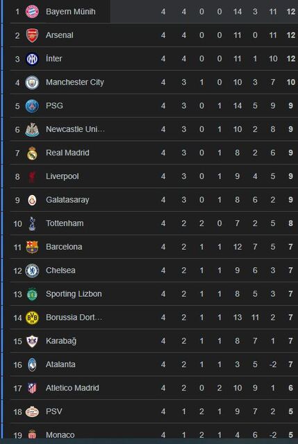 ŞAMPİYONLAR LİGİ PUAN DURUMU