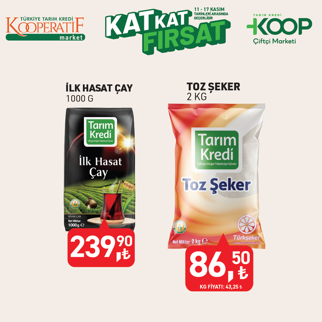 Tarım Kredi Kooperatif Market "Kat Kat" fırsat sloganı ile aktüel kataloğunu duyurdu. Tarım Kredi Marketlerde birçok farklı ürün indirimli fiyatlarıyla satışa sunuluyor. Tarım Kredi Marketlerde 13-17 Kasım tarihleri arasında satışa sunulacak fırsatlar yayımlandı. İşte kasım ayı güncel Tarım Kredi Kooperatif aktüel ürünleri...