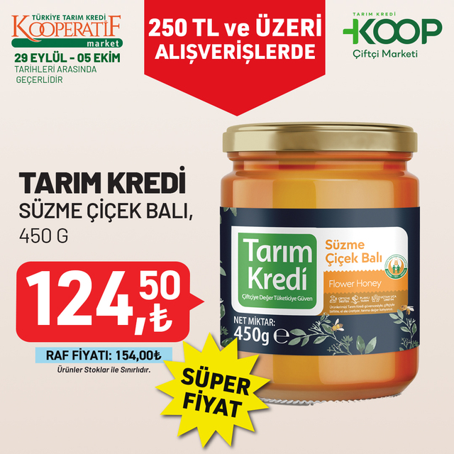 Tarım Kredi Kooperatif Market kataloğu Ekim ayı indirim rüzgarı devam ediyor. Ekim ayında Tarım Kredi markette kedi mamaları, sıvı deterjan, süzme çiçek bal, selpak havlu, siyah çay, pirinç, tavuk indirimde yer alıyor. 6 Ekim'e kadar makarna çeşitleri 13,75 TL'den satışa çıktı. İşte, Ekim ayına özel Tarım Kredi Kooperatif indirim listesi ve fiyatları
