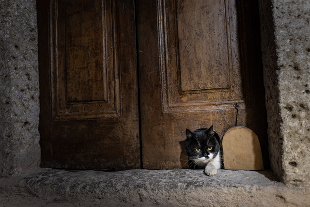 "GİRİŞ ÇIKIŞINI RAHAT SAĞLAMAK AMACIYLA KAPININ ALTINDA KEDİLERE ÖZEL KAPI HAZIRLANMIŞ"