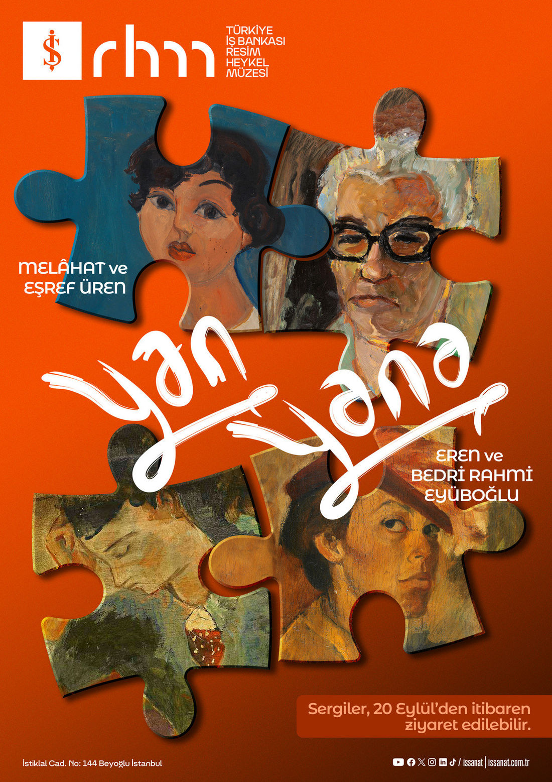 Sanat dünyamızdan iki önemli çiftin, Melahat ve Eşref Üren ile Eren ve Bedri Rahmi Eyüboğlu'nun eserlerini bir araya getiren, Türkiye İş Bankası Resim Heykel Müzesi'nin "Yan Yana" başlıklı yeni süreli sergisi 10 Temmuz 2026'ya kadar sanatseverlerle buluşacak