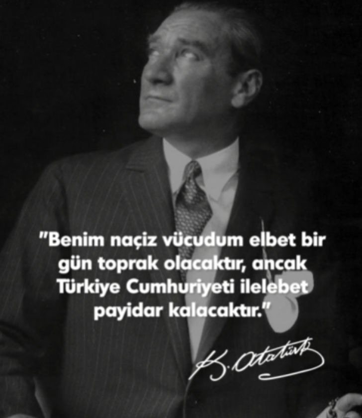 Güzide Duran: Sonsuz saygı, sevgi ve minnetle... Mustafa Kemal Atatürk; "Benim naçiz vücudum elbet bir gün toprak olacaktır; fakat Türkiye Cumhuriyeti ilelebet payidar kalacaktır." Sonsuz saygı, sevgi ve minnetle...