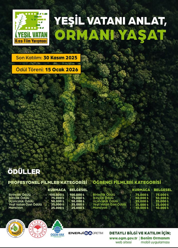 Orman Genel Müdürlüğü'nün koordinasyonunda düzenlenen "Yeşil Vatan Kısa Film Yarışması"na artan talep doğrultusunda başvurular 30 Kasım'a kadar uzatıldı. Yarışmanın finalistleri, 21 Aralık tarihinde açıklanırken ödül töreni ise 15 Ocak 2026 tarihinde gerçekleşecek