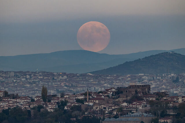 Süper Ay 5 Kasım saat 16.19’da tam Dolunay evresine ulaştı. En büyüleyici manzara ise, hava açıksa gün batımından kısa süre sonra yaşandı.